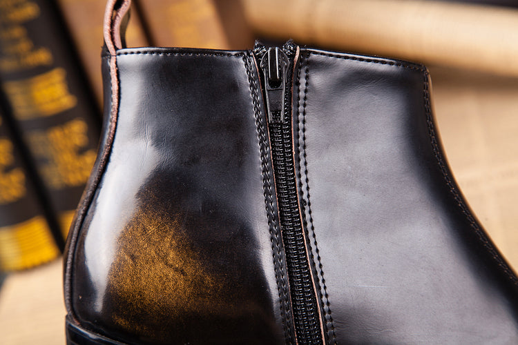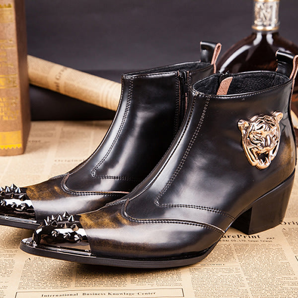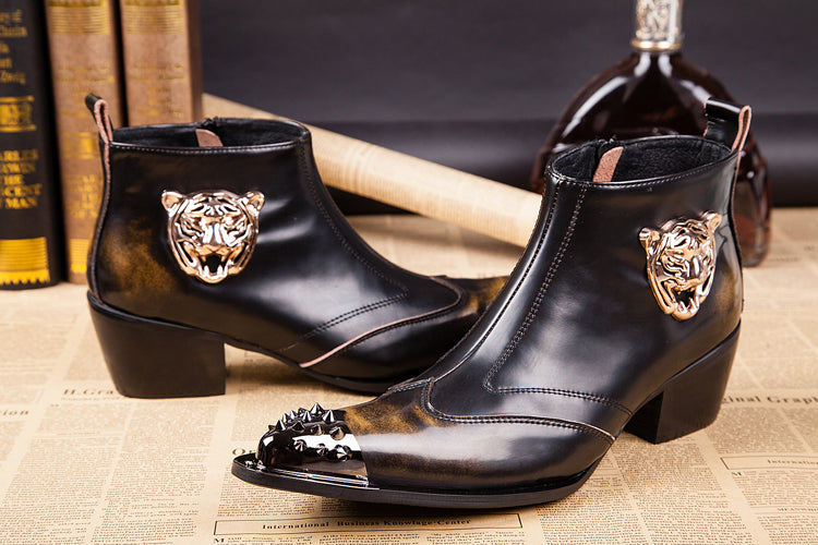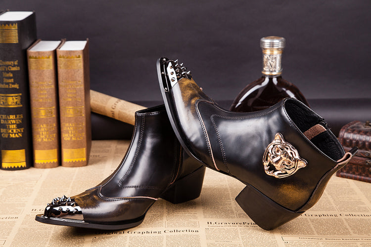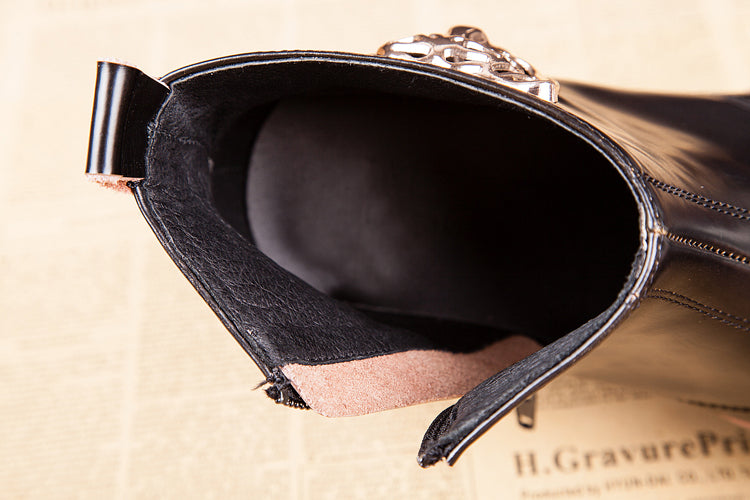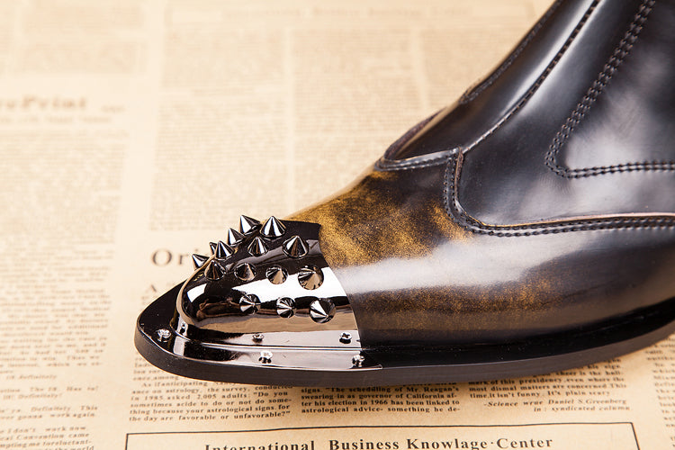 Step out in utmost style by sporting these appealing slip-on Chelsea Boot with a PUNK pattern. The leather made brogues for men have a pointed toe shape and have been made using genuine leather material. The full grain leather insole and lining will offer you comfort while the durable rubber outsole takes care of your comfort.
