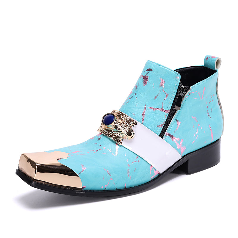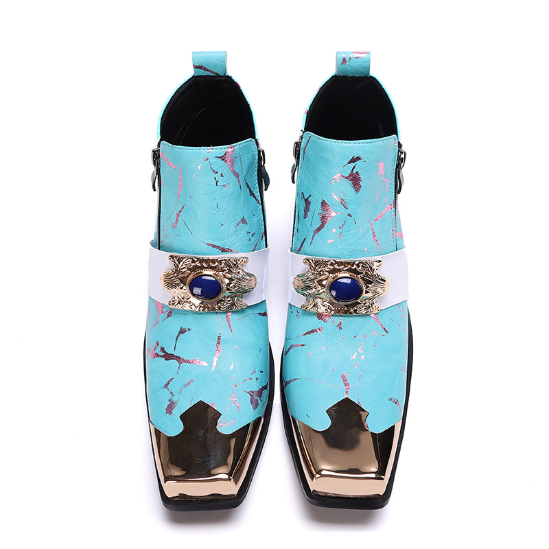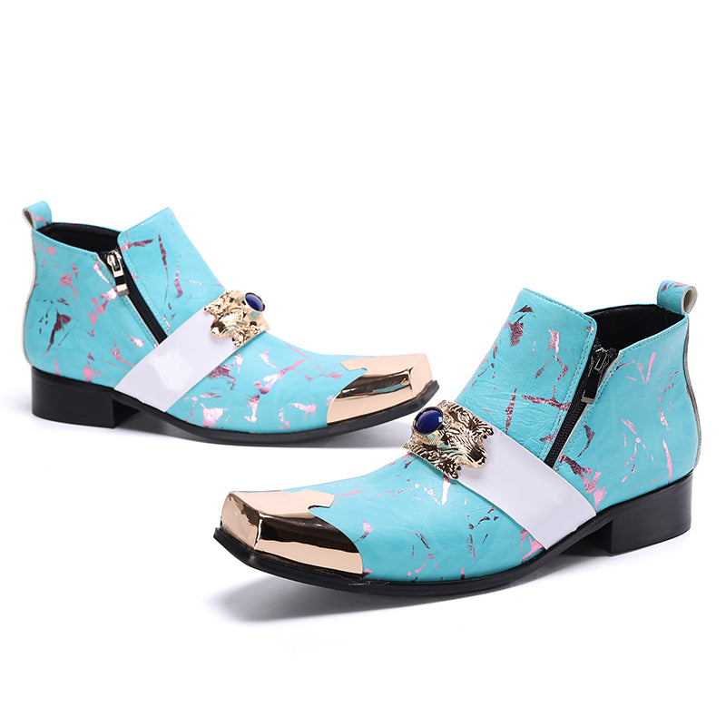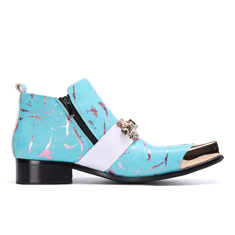 Step out in utmost style by sporting these appealing slip-on Party Chelsea Boot with a PUNK pattern. The leather made brogues for men have a pointed toe shape and have been made using genuine leather material. The full grain leather insole and lining will offer you comfort while the durable rubber outsole takes care of your comfort.