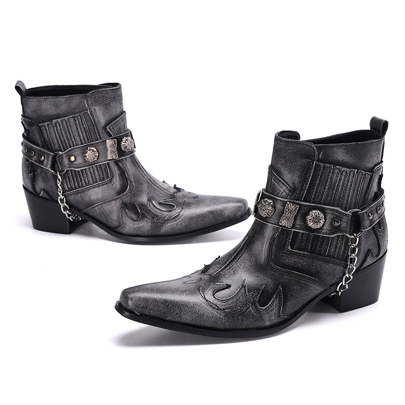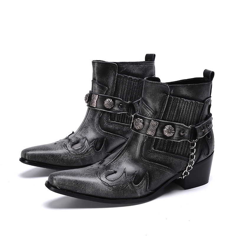 Step out in utmost style by sporting these appealing slip-on Party Chelsea Boot with a PUNK pattern. The leather made brogues for men have a pointed toe shape and have been made using genuine leather material. The full grain leather insole and lining will offer you comfort while the durable rubber outsole takes care of your comfort.