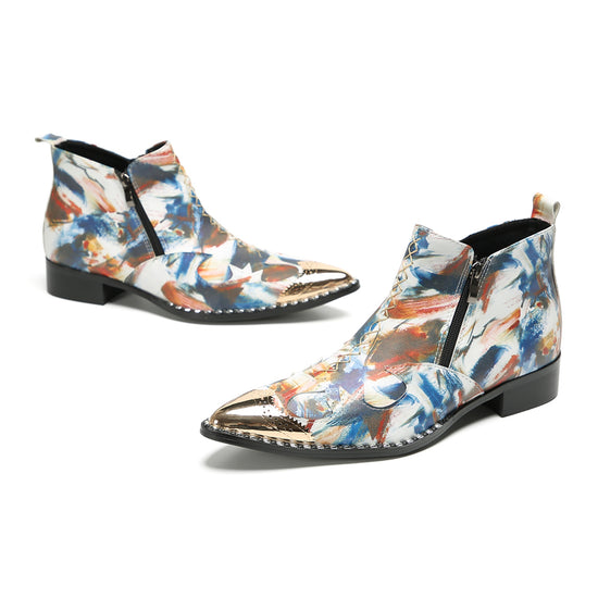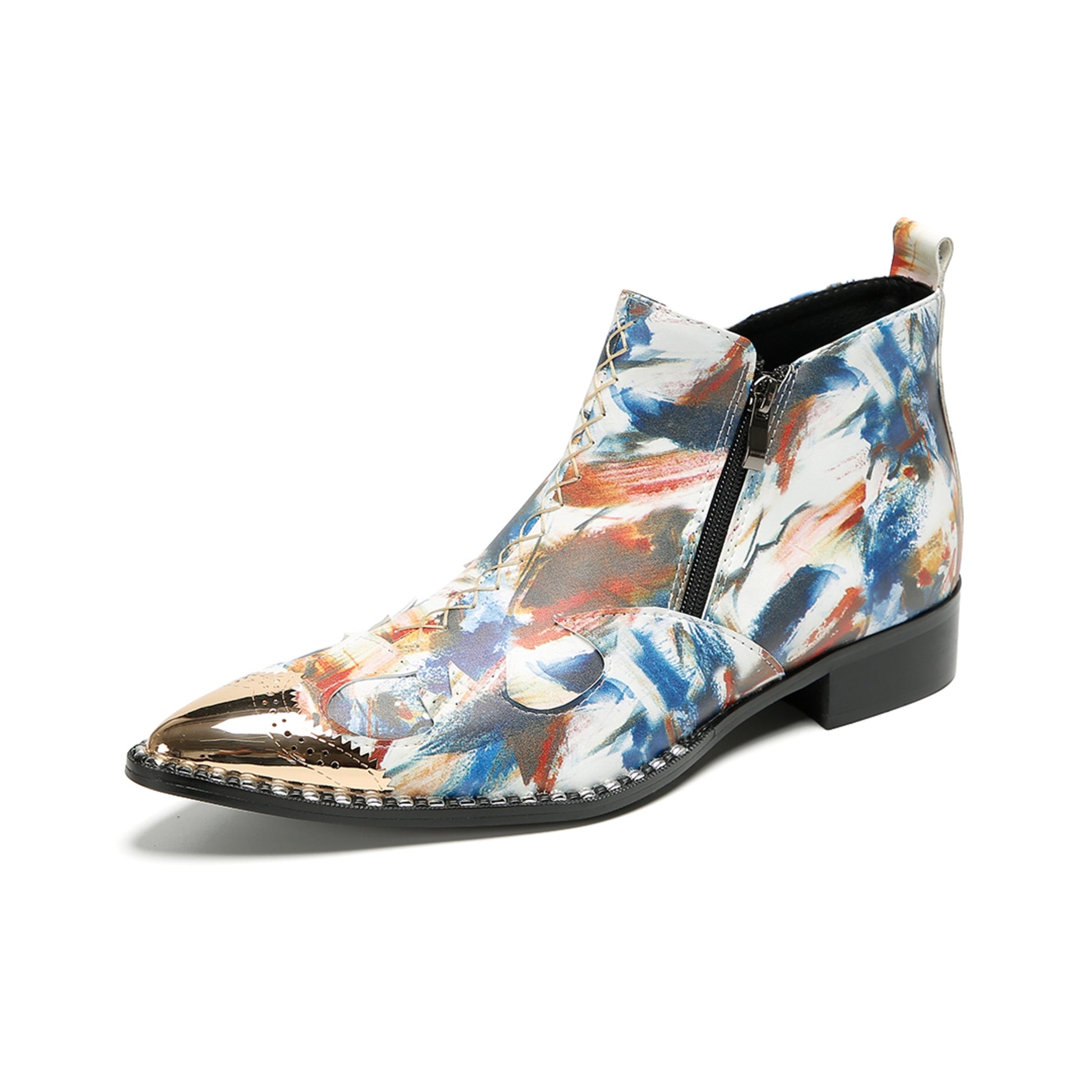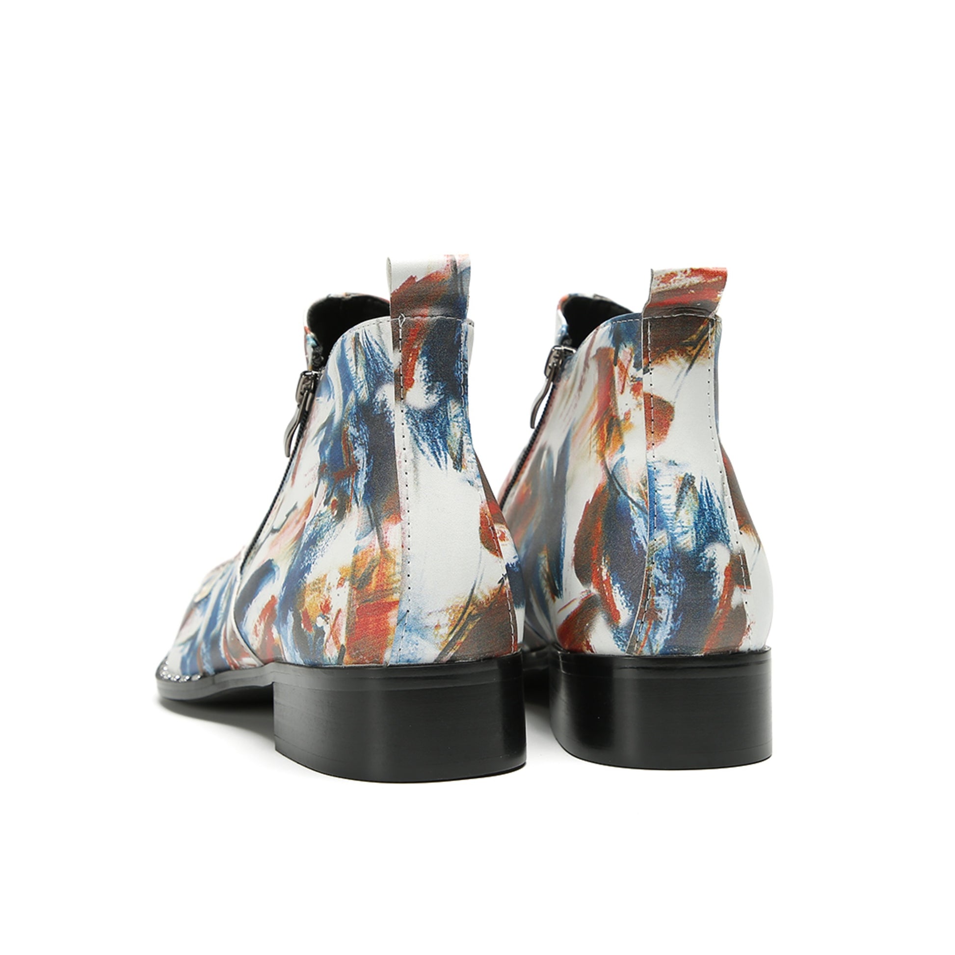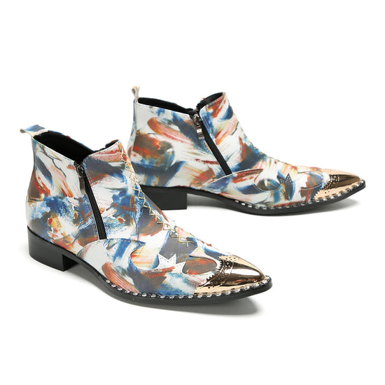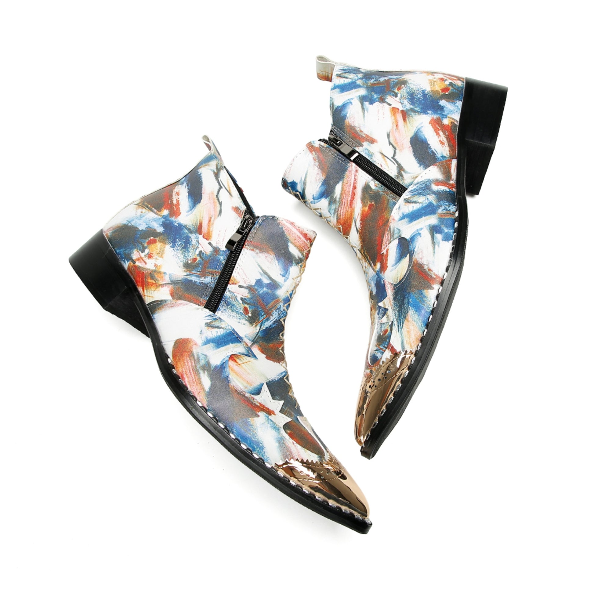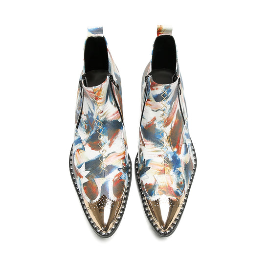 Abstract Painted Metallic Toe Ankle Boots #4128