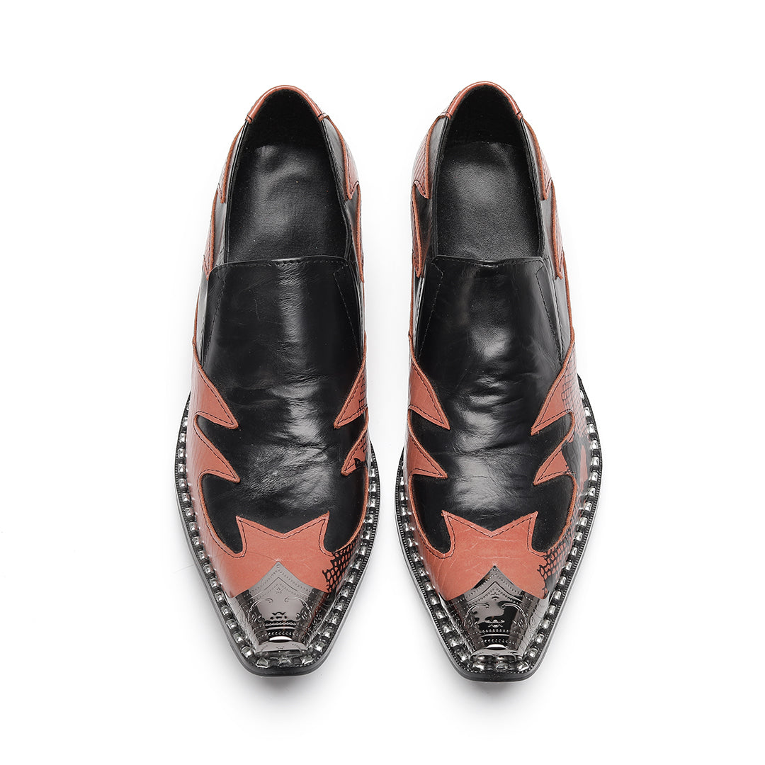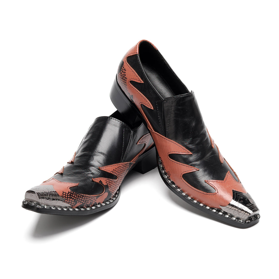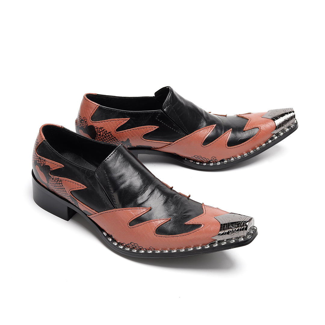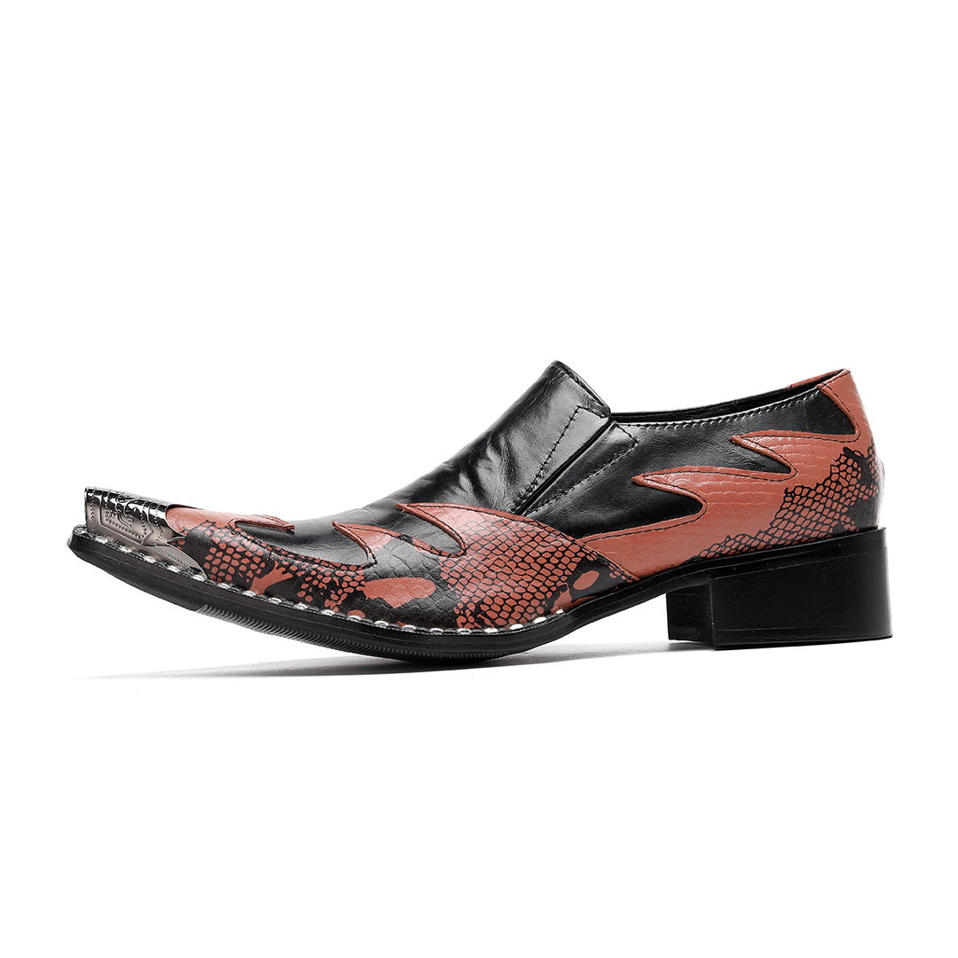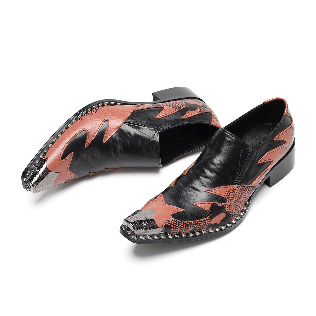 AOMISHOES™ Black Orange Snake Metal Tip Shoes #4072