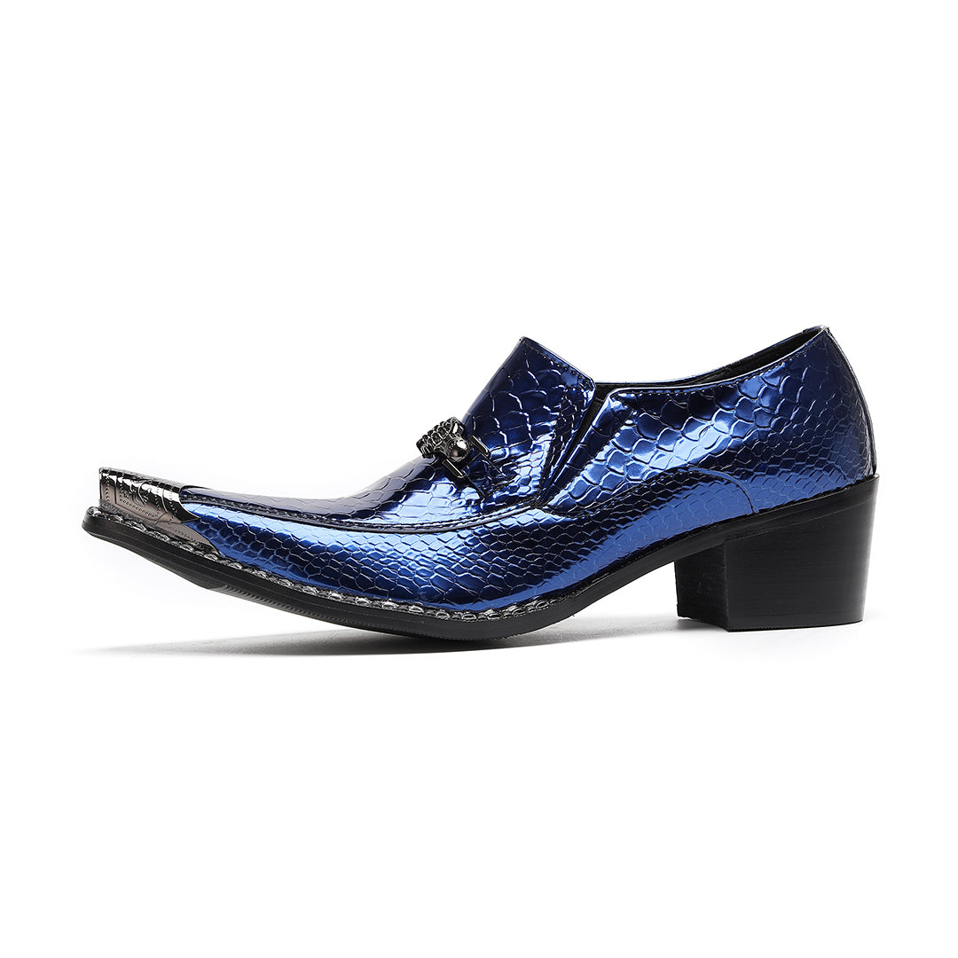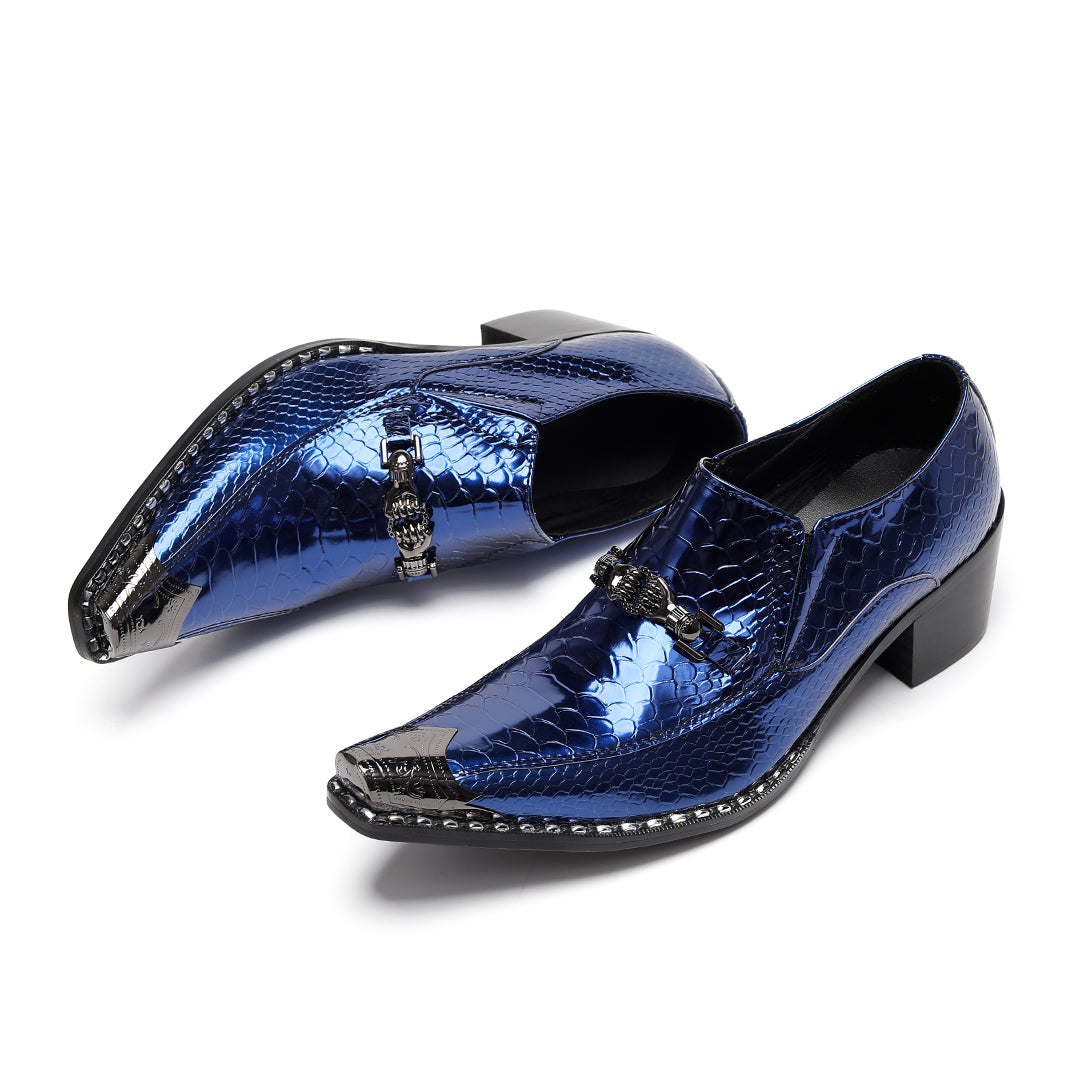AOMISHOES™ Blue Snake Skin Metal Tip Shoes #4097