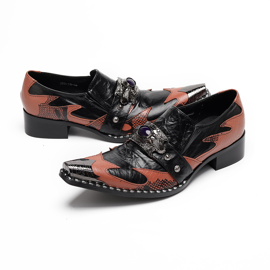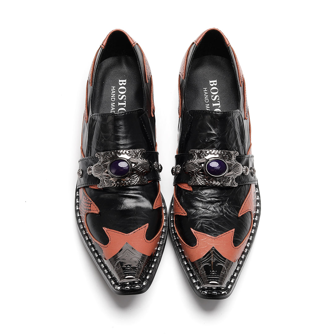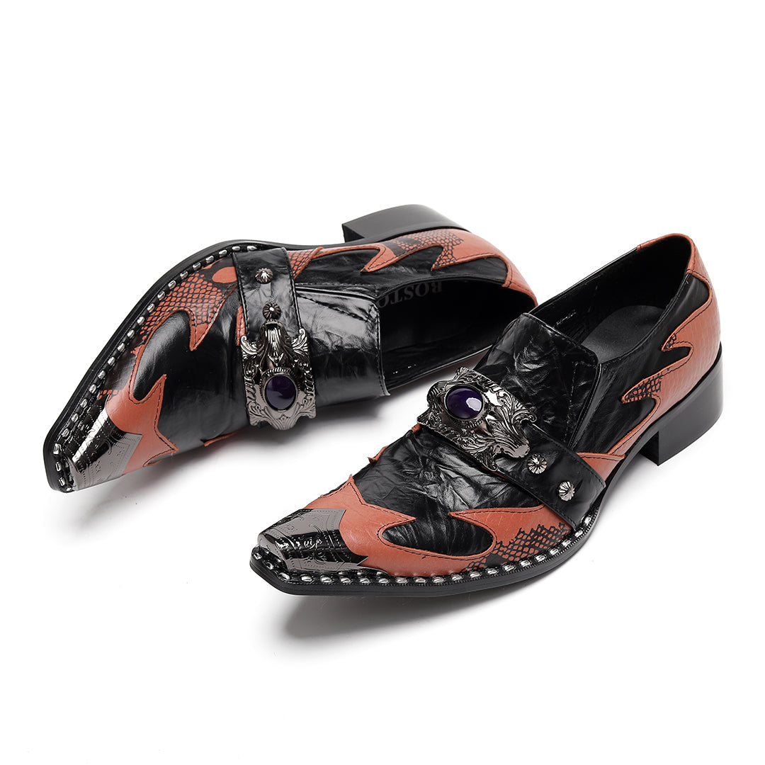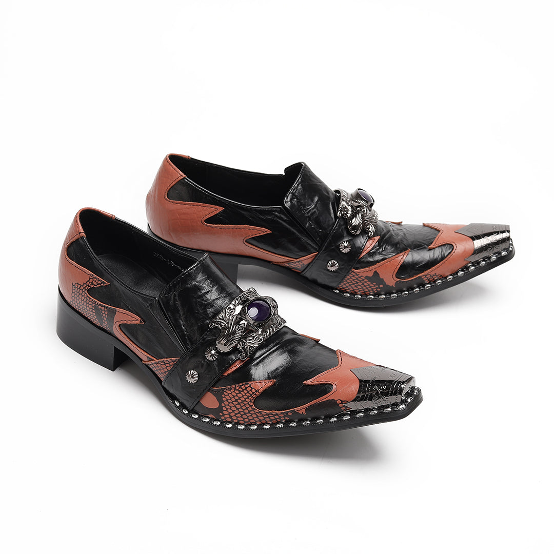 AOMISHOES™ Brown-Black Gem-Embedded Metal Tip Shoes #4070