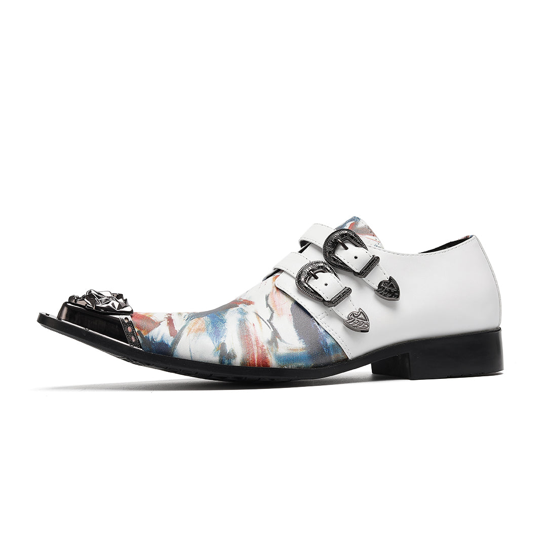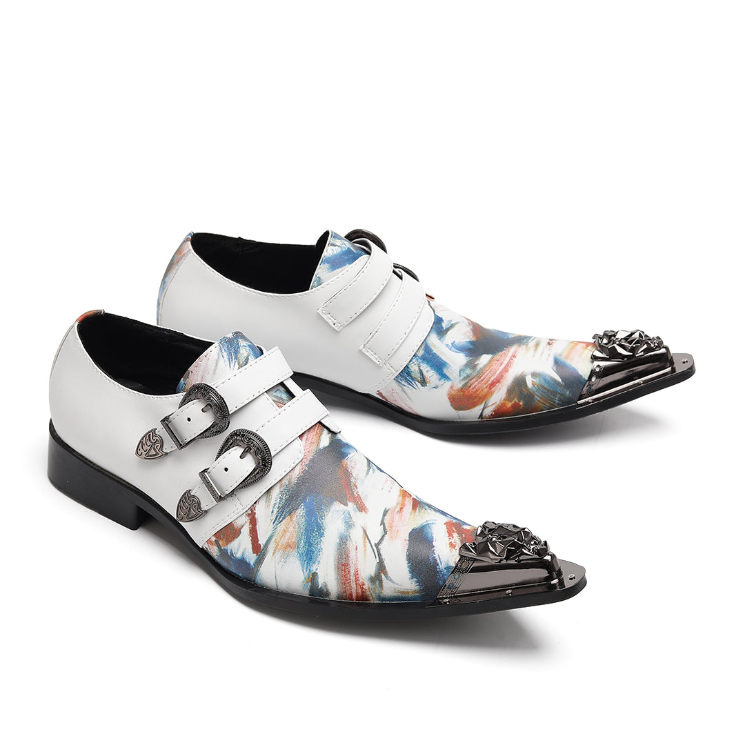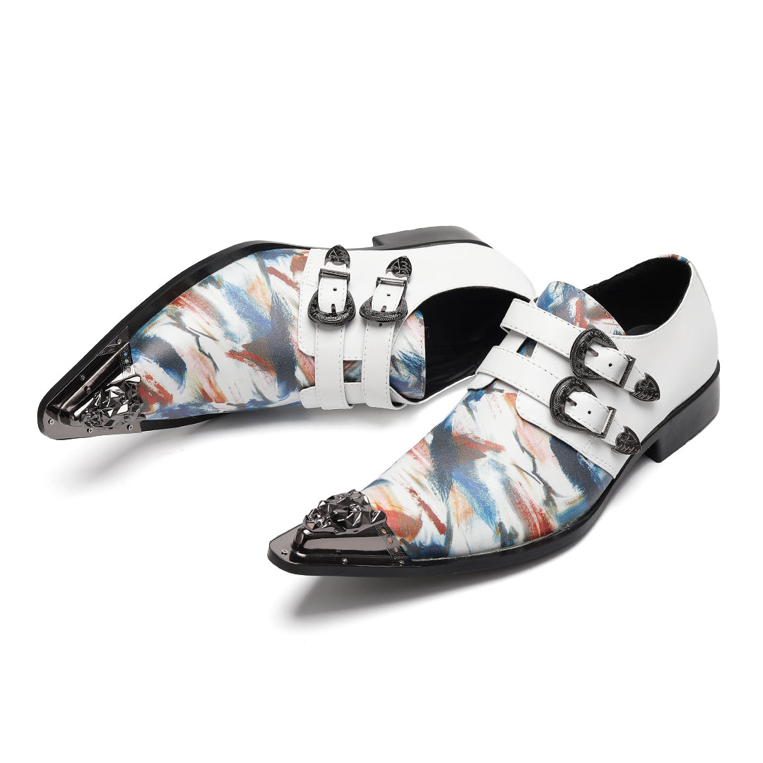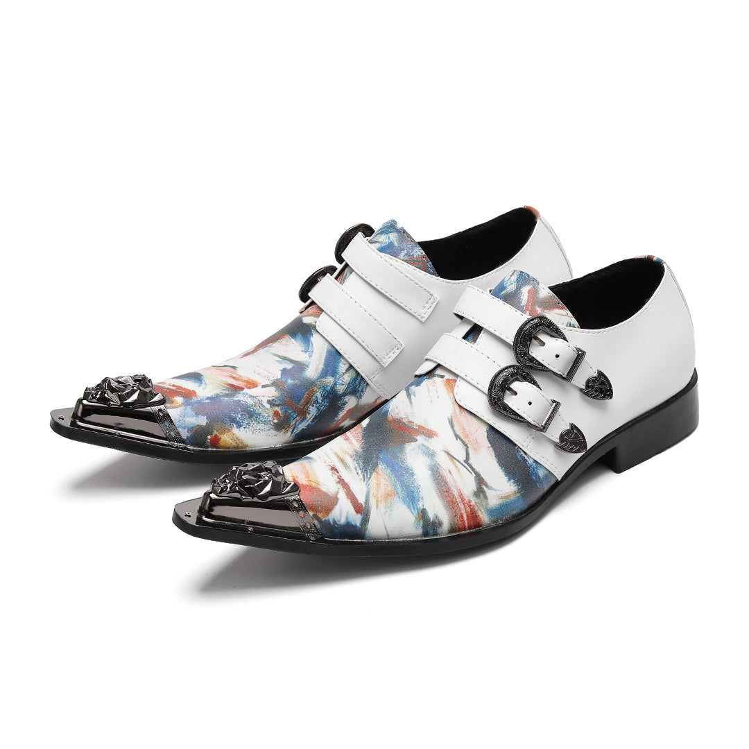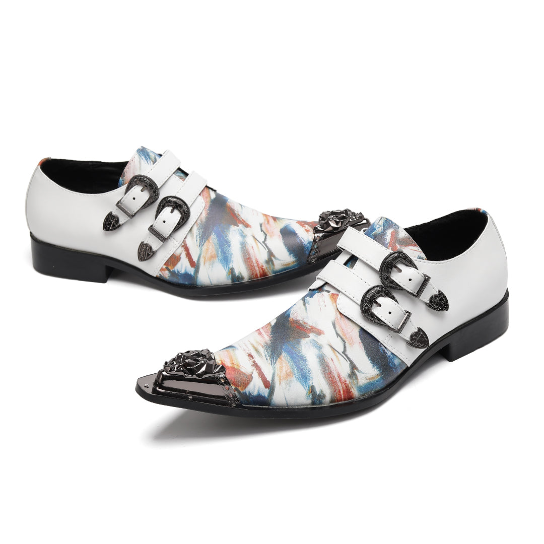 AOMISHOES™ Colorful Graffiti Double Buckle Metal Tip Shoes #4079