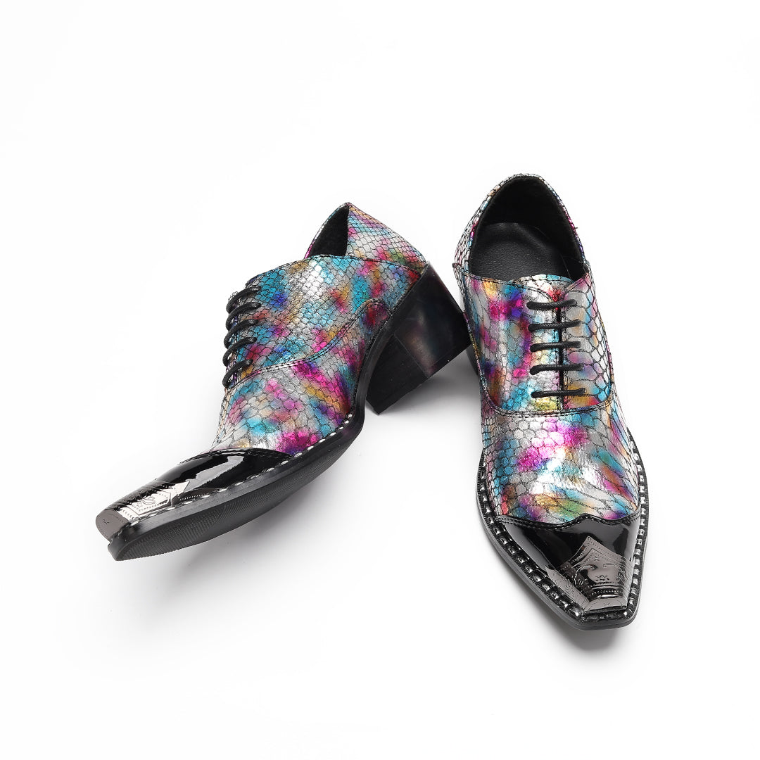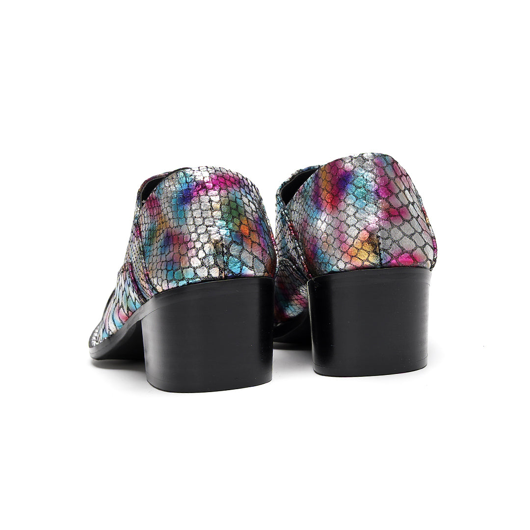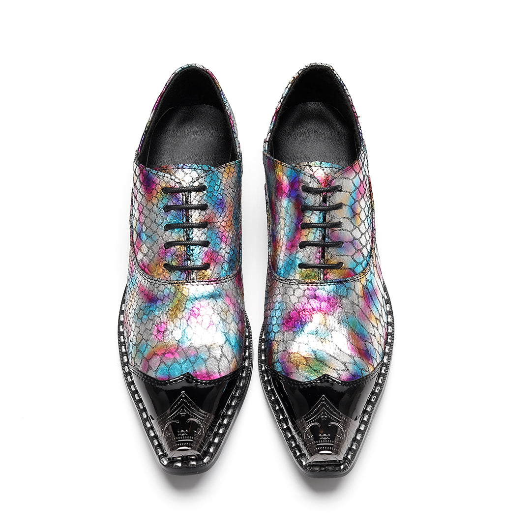 AOMISHOES™ Colorful Snake Pattern Metal Tip Shoes #4087