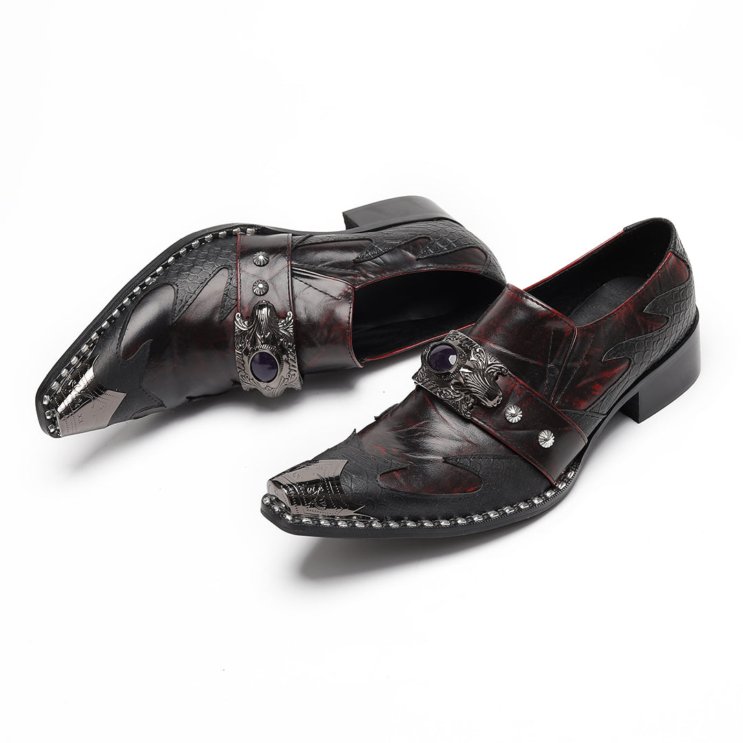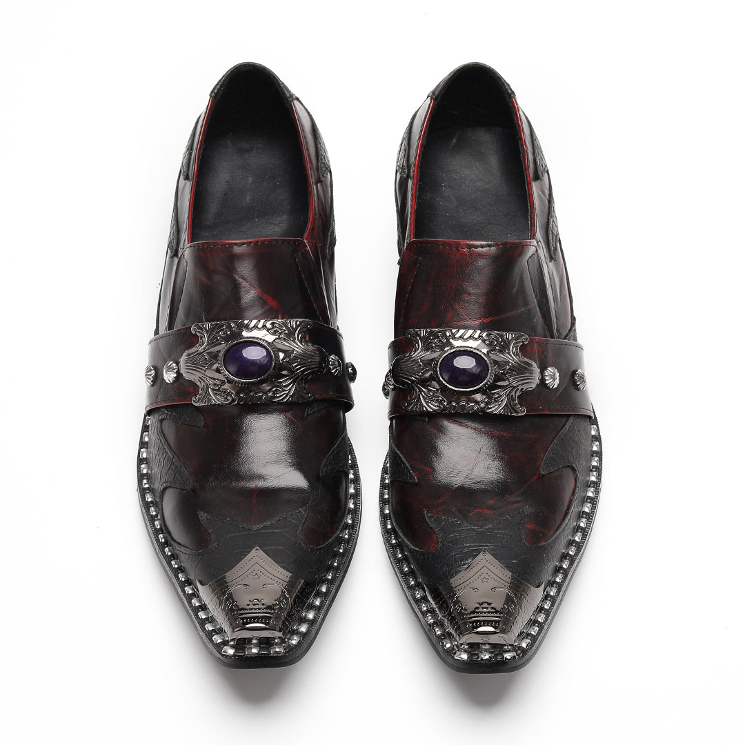 AOMISHOES™ Red Black Metal Gem Metal Tip Shoes #4084