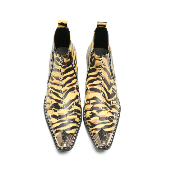Bold Tiger Stripe Metal Tip Ankle Boots #4130