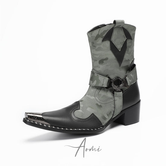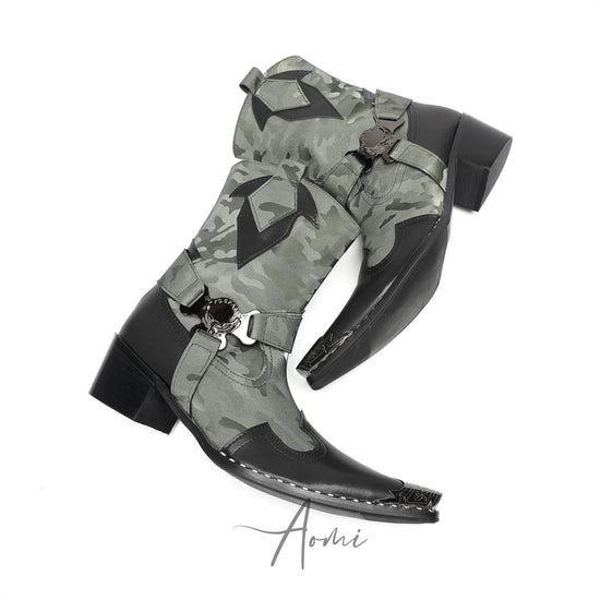 Camo Pointed Metal Western Boots #4152