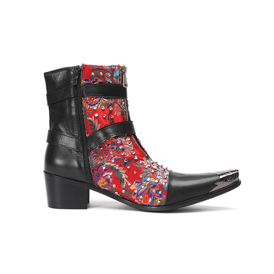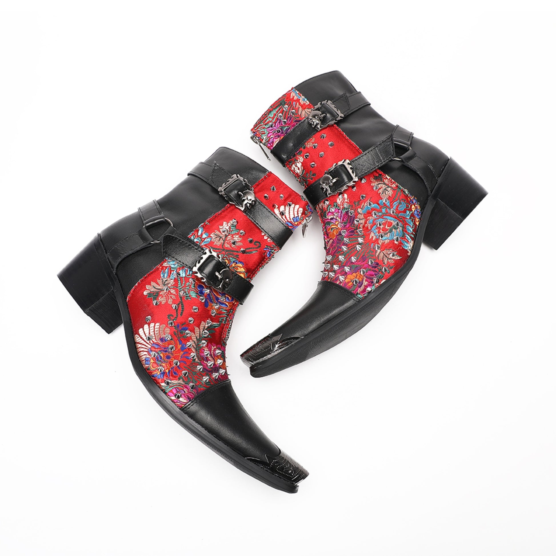 Edgy Red Floral Studded Ankle Boots #4144