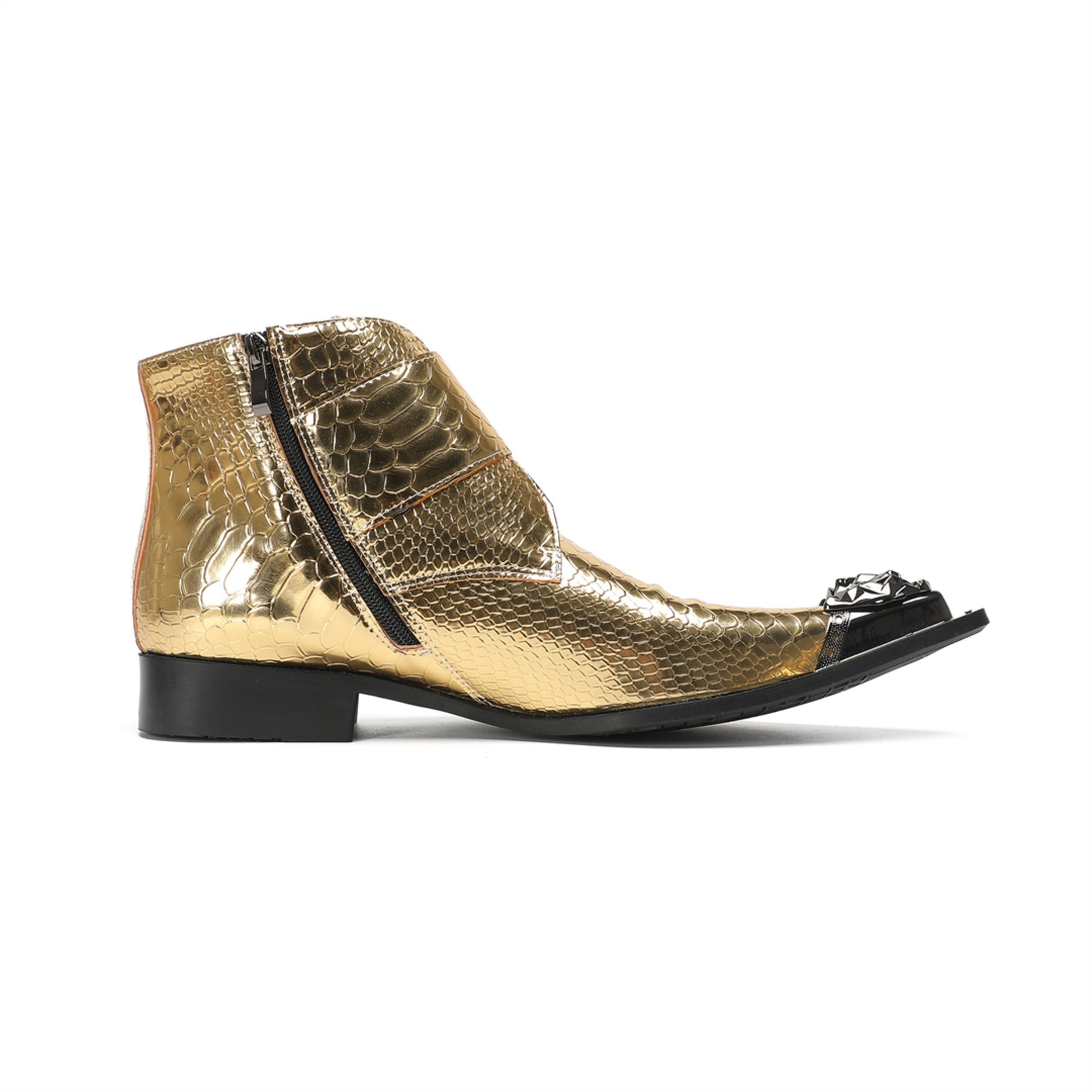Shiny Gold Snakeskin Buckle Ankle Boot #4121