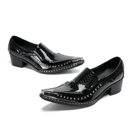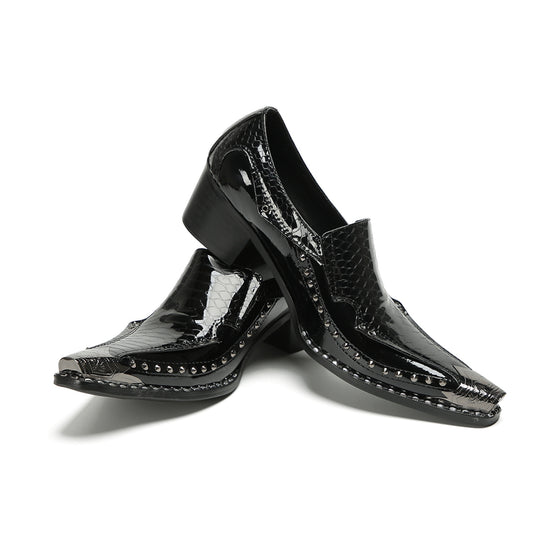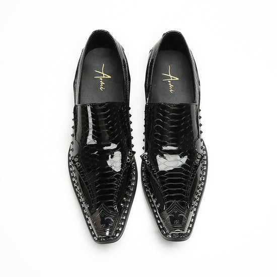 Studded Pointed Black Patent Loafers #4131