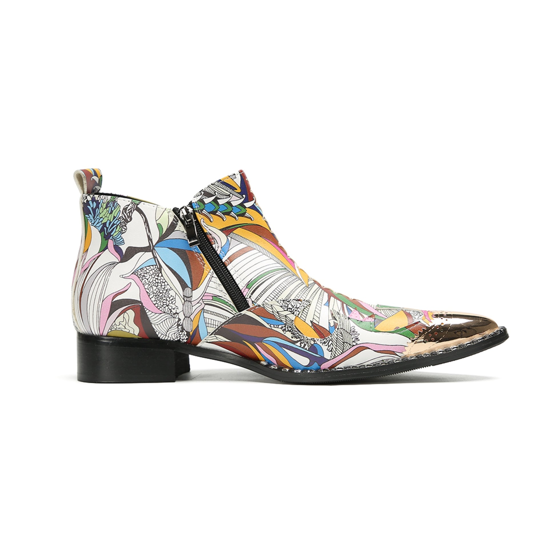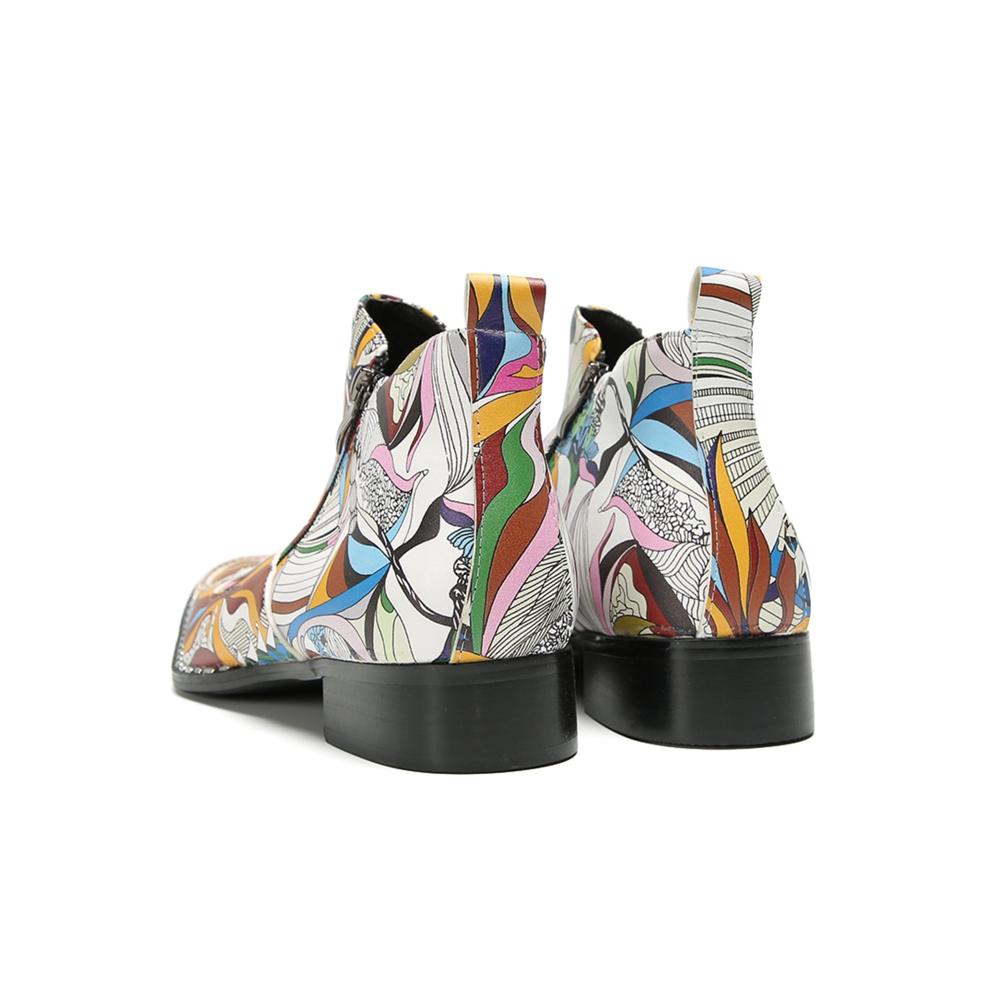Vibrant Patterned Metal-Tip Ankle Boots #4126